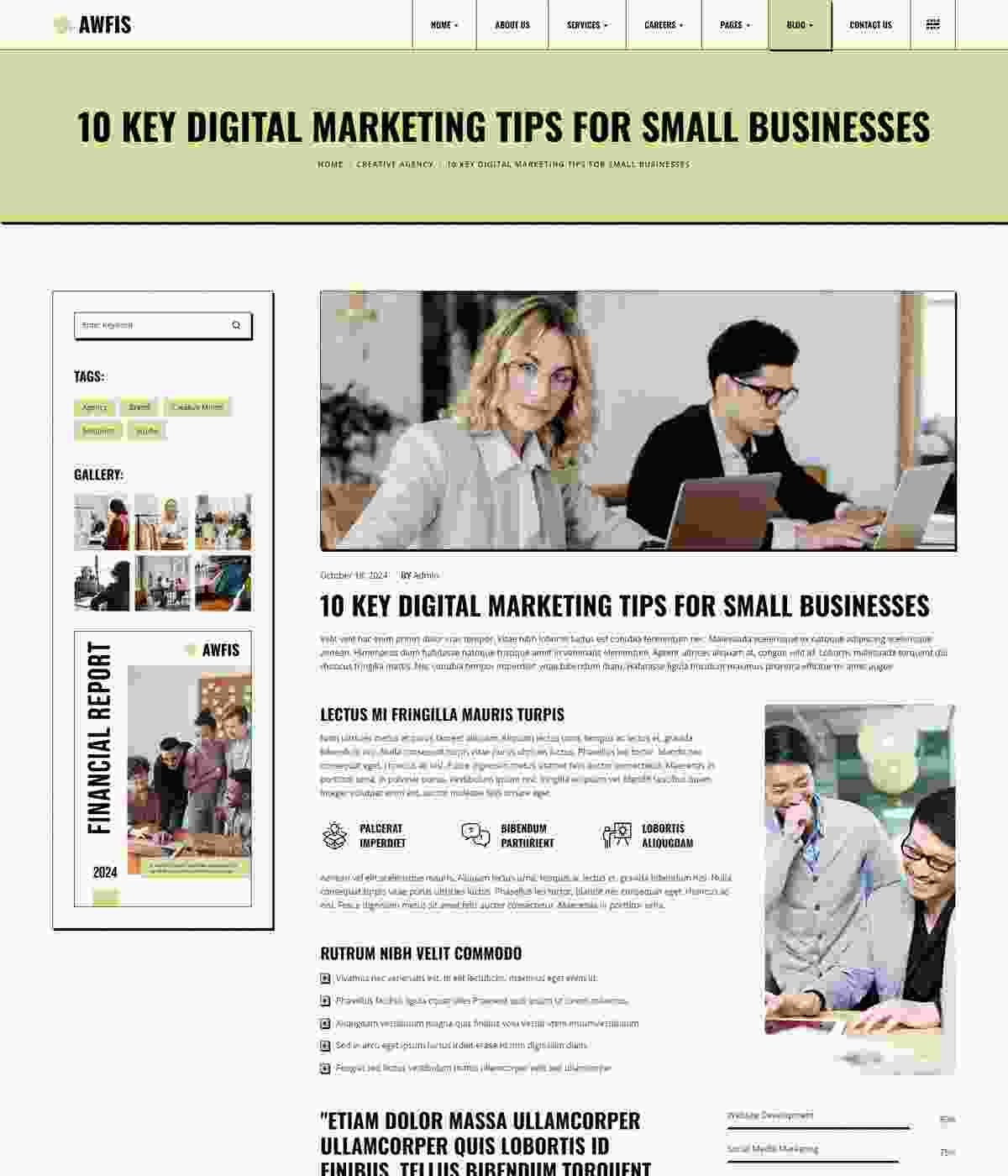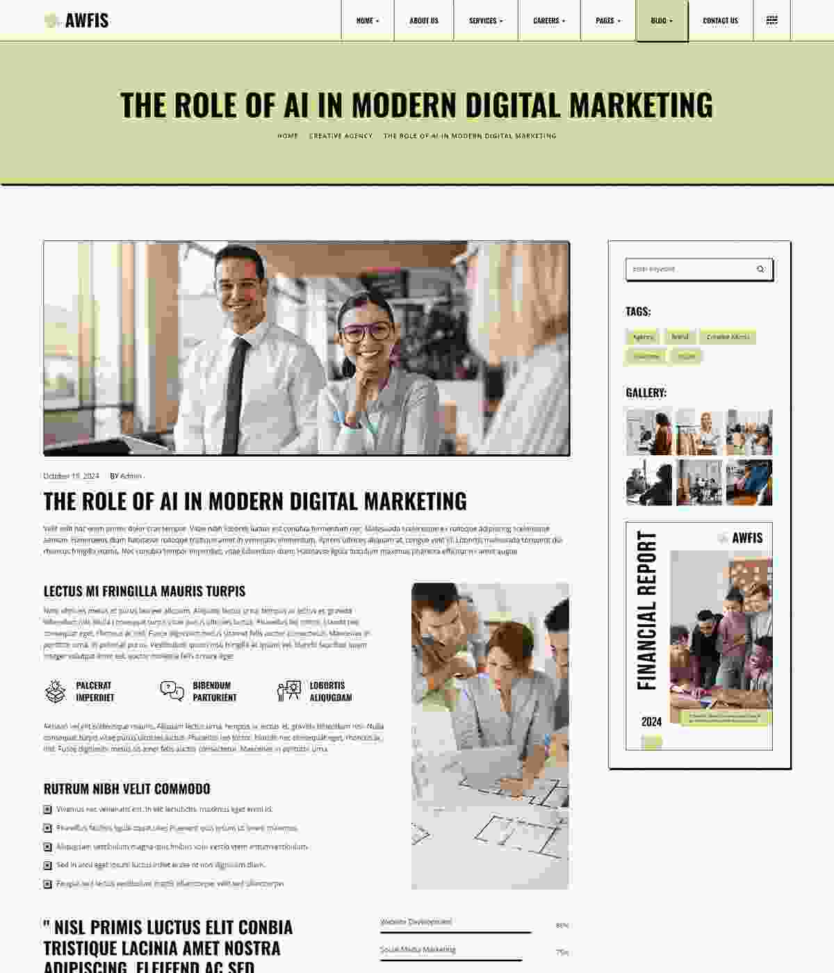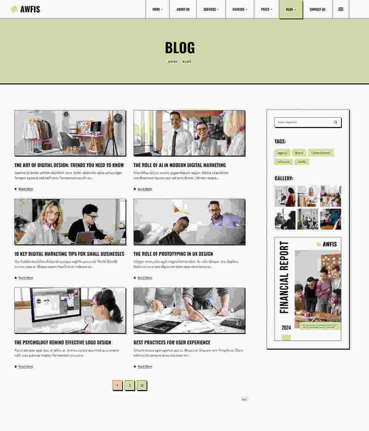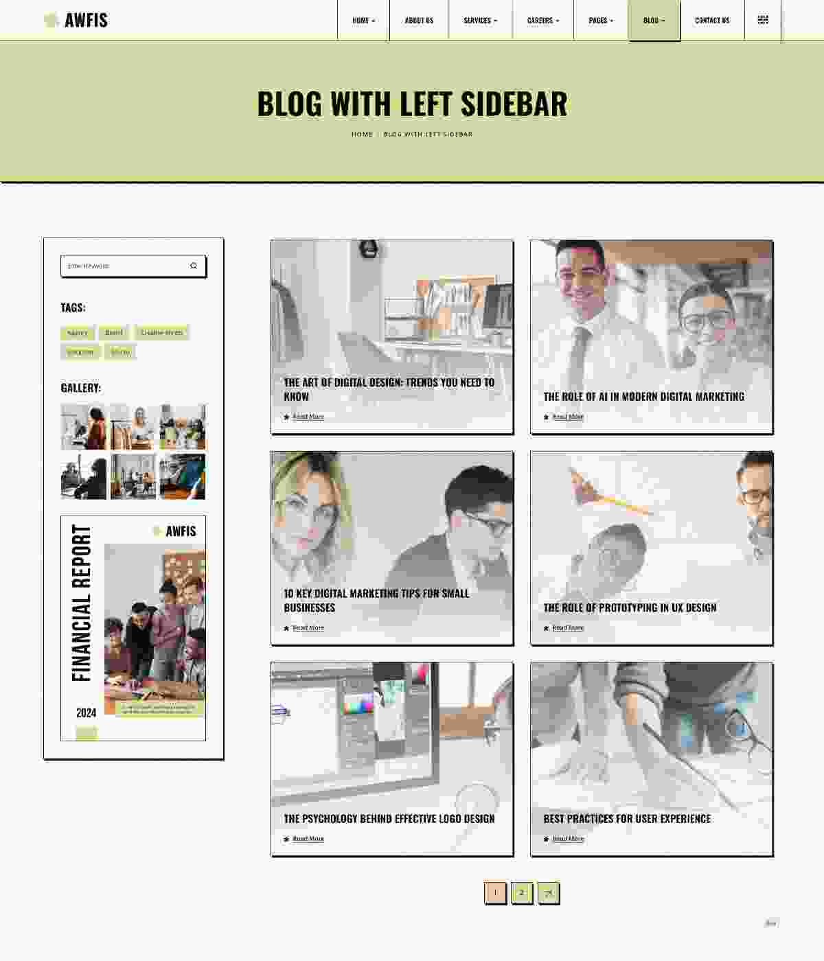 Awfis got unlimited post and even changes this on a page-by-page basis! Want one layout for one category, no problem! Create unique Blog, Portfolio pages, and provide the best user experience to the visitors..